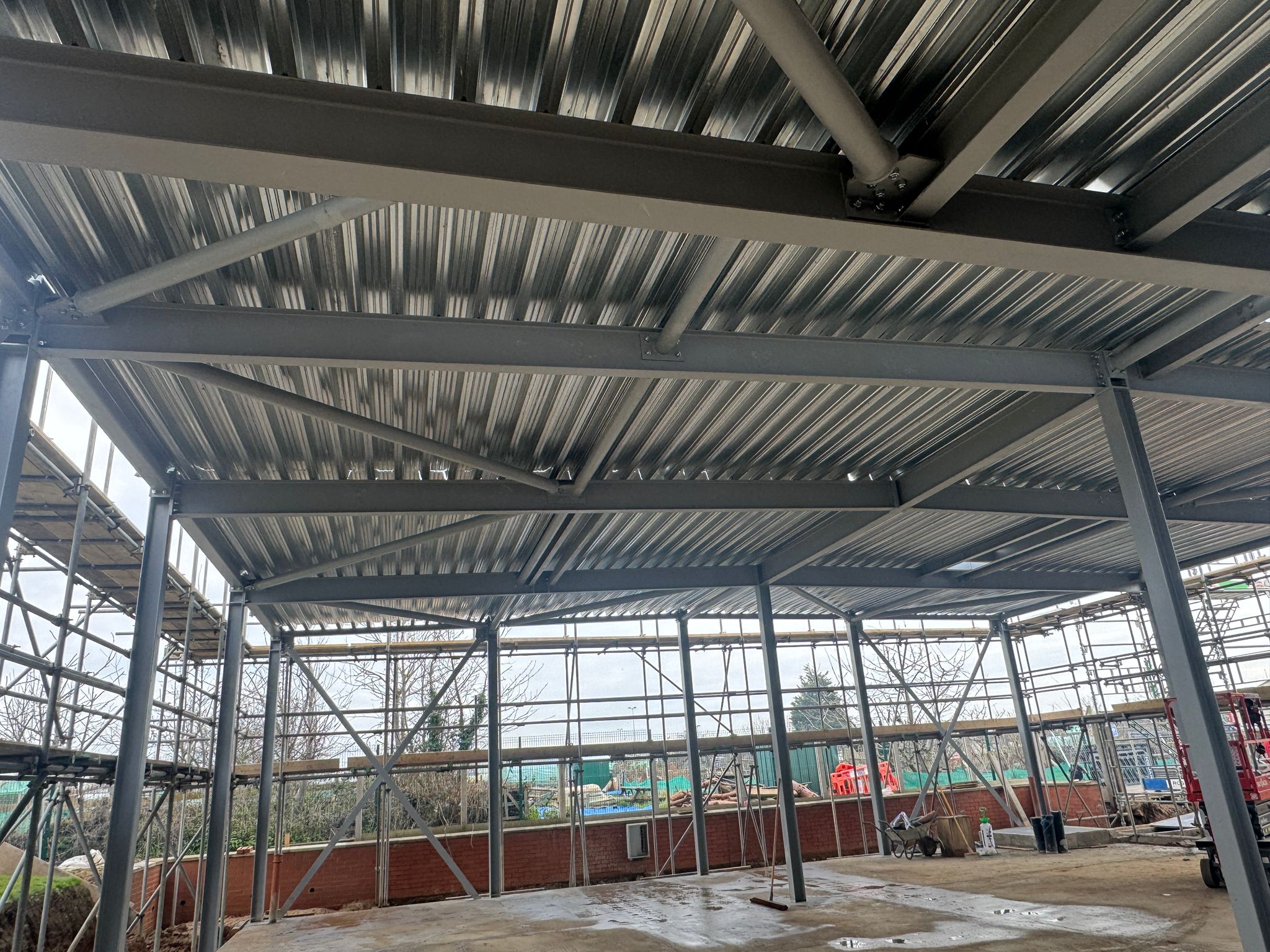 Working in partnership with Fullpen Fabrications and Roskerry, Concrete SF completed the supply and installation of safety netting and TATA RoofDek D100 steel decking—covering 220 m²—in a single working day, with zero disruption and no delays.